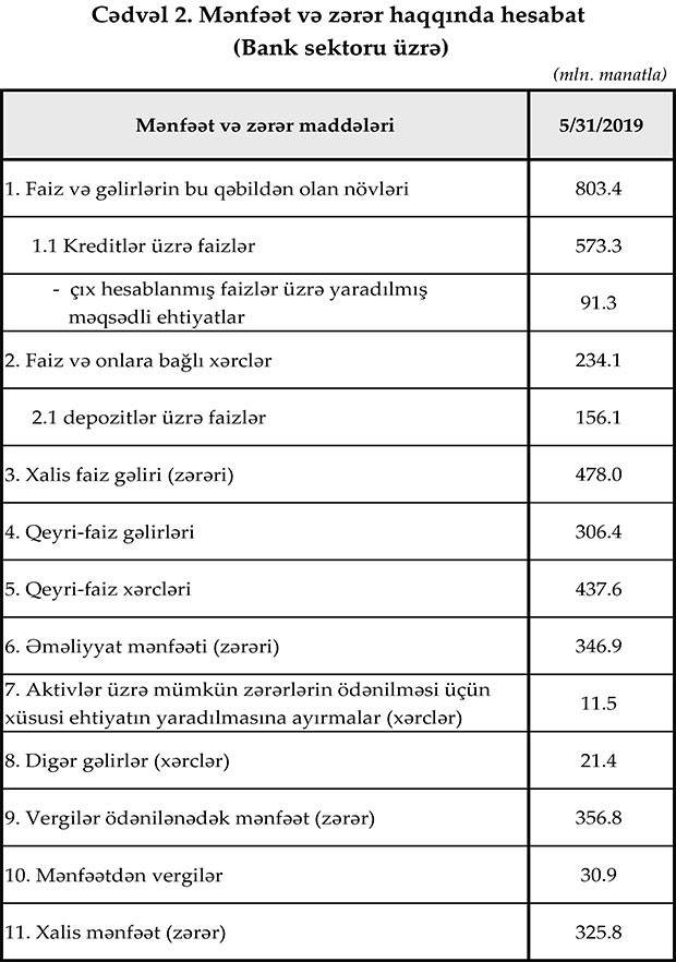 Ötən ilin ilk 5 ayında 5.5 milyon manat zərərdə olmuş Azərbaycanın bank sektoru 2019-cu ilin eyni dövrünü 325.8 milyon manat xalis mənfəət ilə başa vurub.