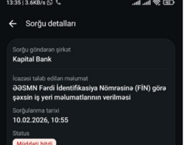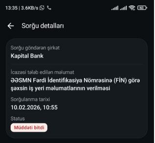 Kommersant.az xəbər verir ki, redaksiyamıza daxil olan şikayətlərdən biri də vətəndaş Məmməd Abdullayevdən gəlib. Belə ki, vətəndaşın sözlərinə görə, hazırda müştərisi olmadığı halda “Kapital Bank” onun şəxsi məlumatlarını “mygov.az” portalından əldə etmək istəyib. Bu şəxsi məlumatlara vətəndaşın maaşı, iş yeri haqqında məlumat və s. daxildir. M.Abdullayev bildirir ki, onun mygov.az portalından bildiriş gəlib ki, “Kapital Bank” ASC məlumat yoxlanılması üçün razılıq istəyir”. Hansı ki, vətəndaşın banka heç bir sorğusu, kredit istəyi və ya müraciəti olmayıb. Buna görə də banka aşağıdakı sorğunu göndərdik. Banka təqdim etdiyimiz sorğunu dəyişmədən siz oxuculara təqdim edirik: